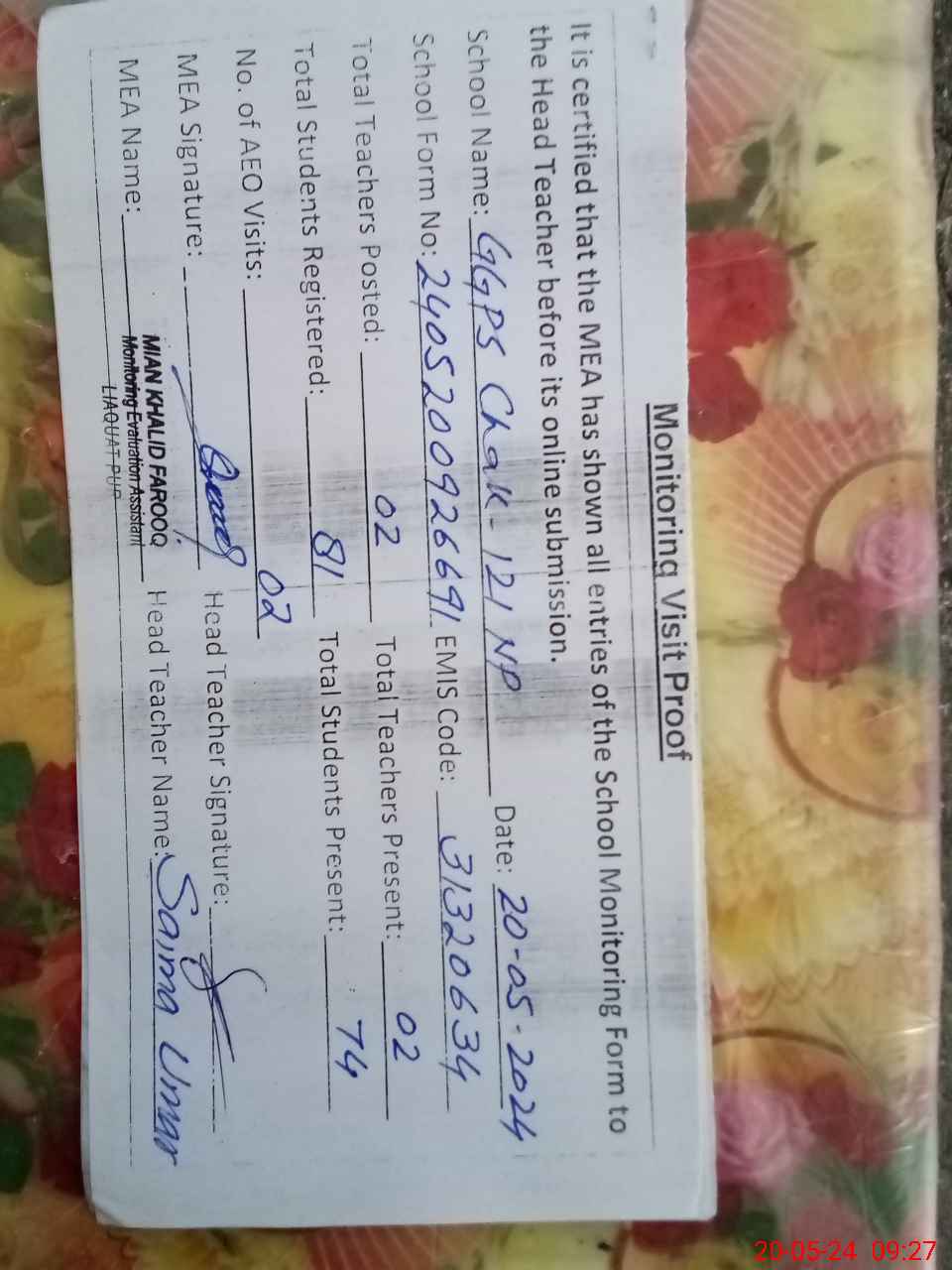 | EMIS Code: 31320634 | Name of School: GGPS CHAK NO.121/NP | |||