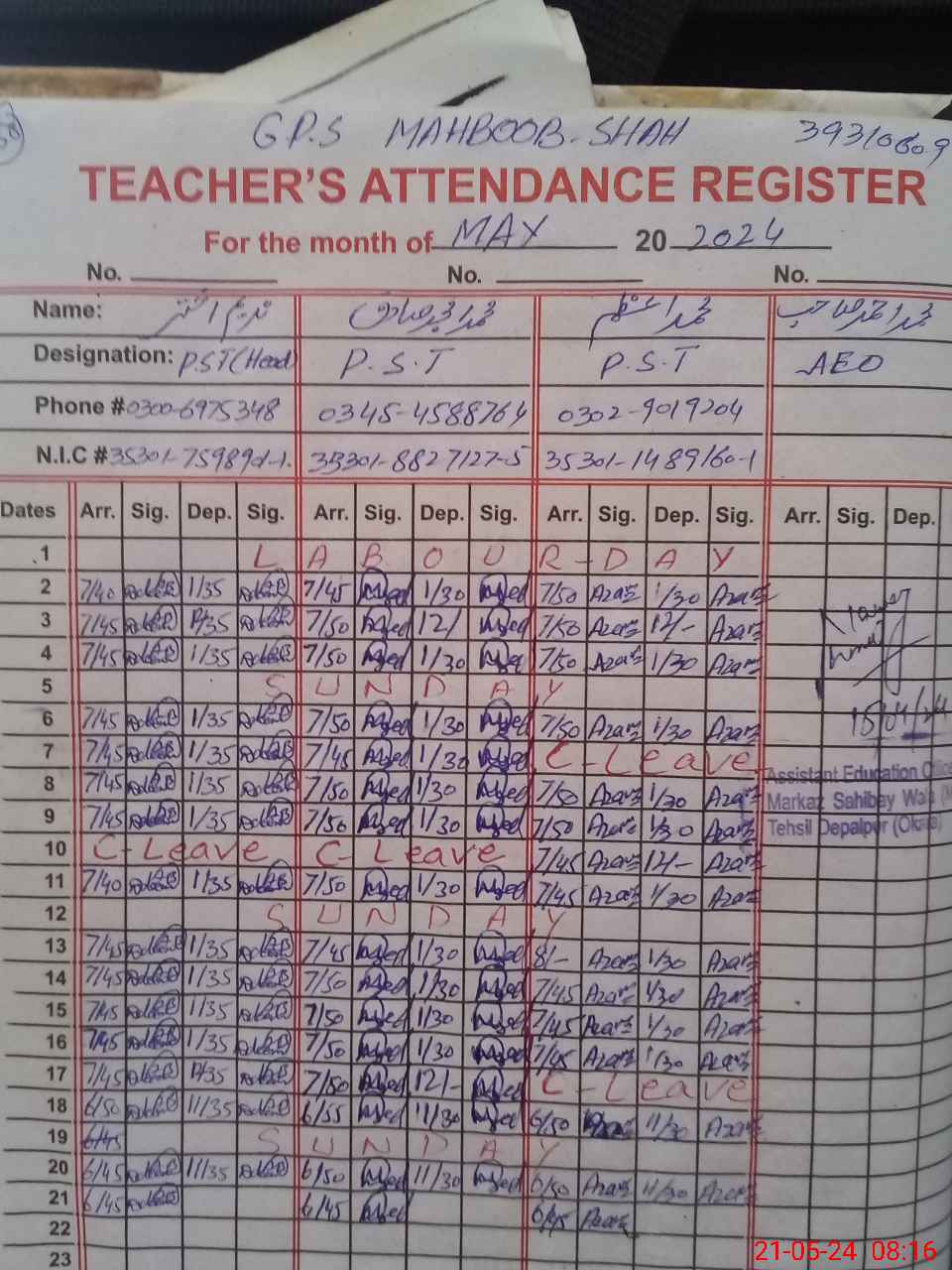 | Name: NA**** AK**** Designation: (School Headmaster's/Headmistress's) PST Phone/Cell Number: 03**** |