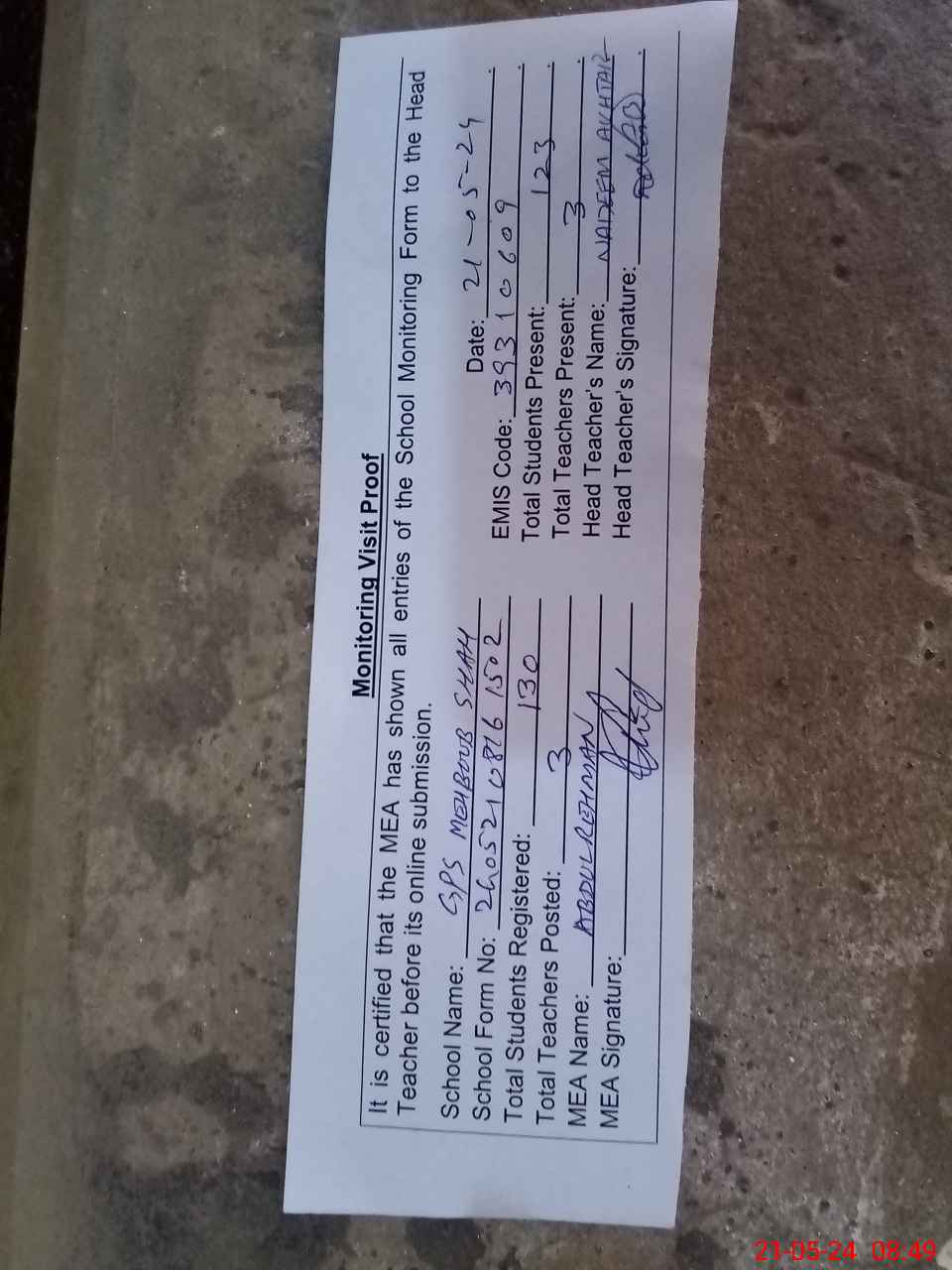 | EMIS Code: 39310609 | Name of School: GPS MAHBOOB SHAH | |||
