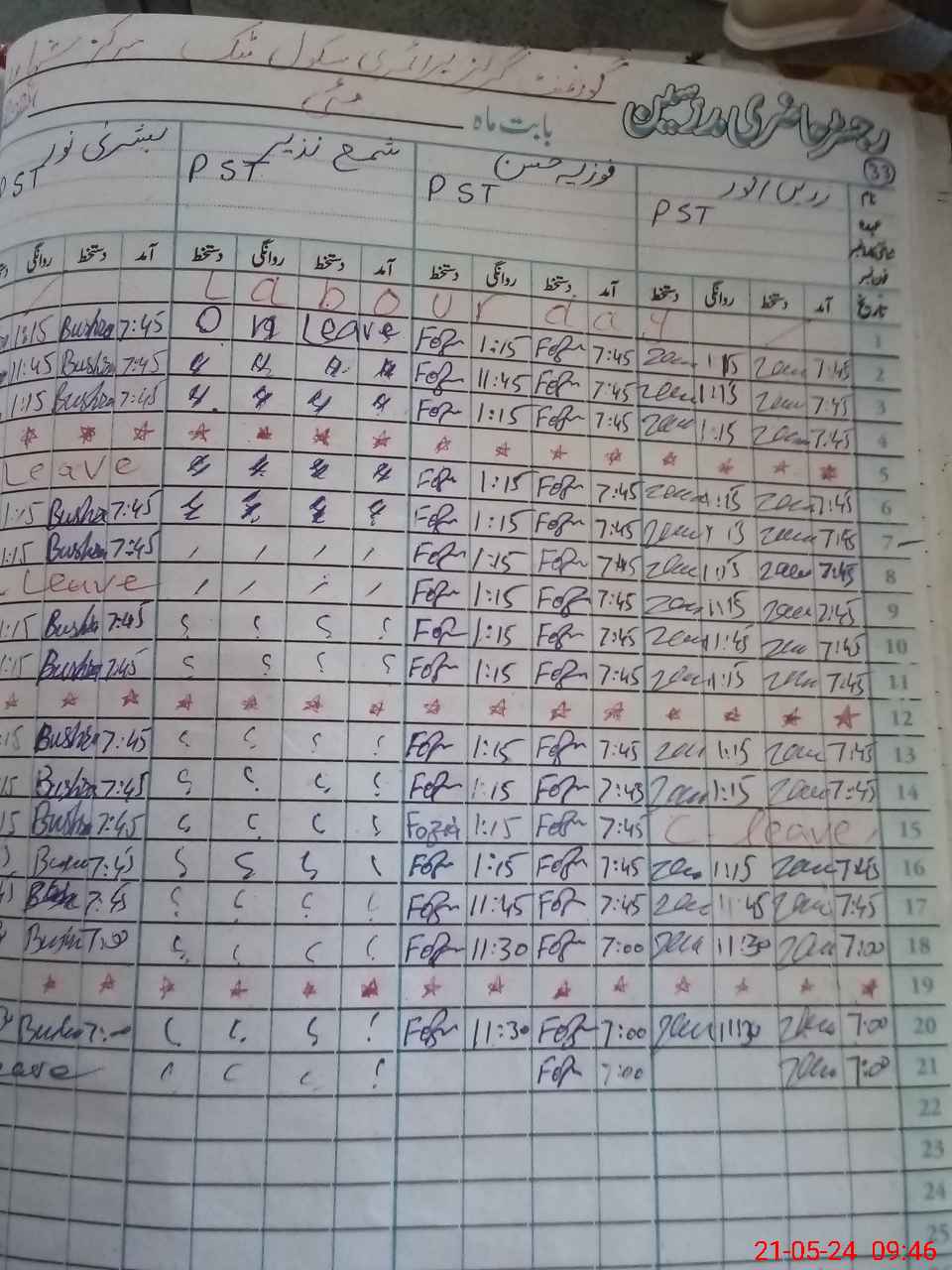 | 35**** | Sh**** Na**** | PST | Regular | 0 | 0 | 0 | 0 | 0 | 0 | 0 | 0 | 0 | Absent (Un-Authorized) |