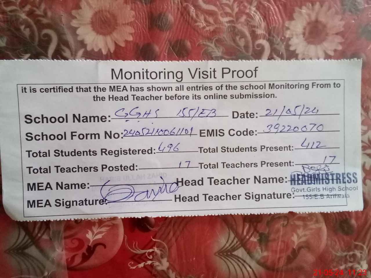 | EMIS Code: 39220070 | Name of School: GGHS 155 EB | |||