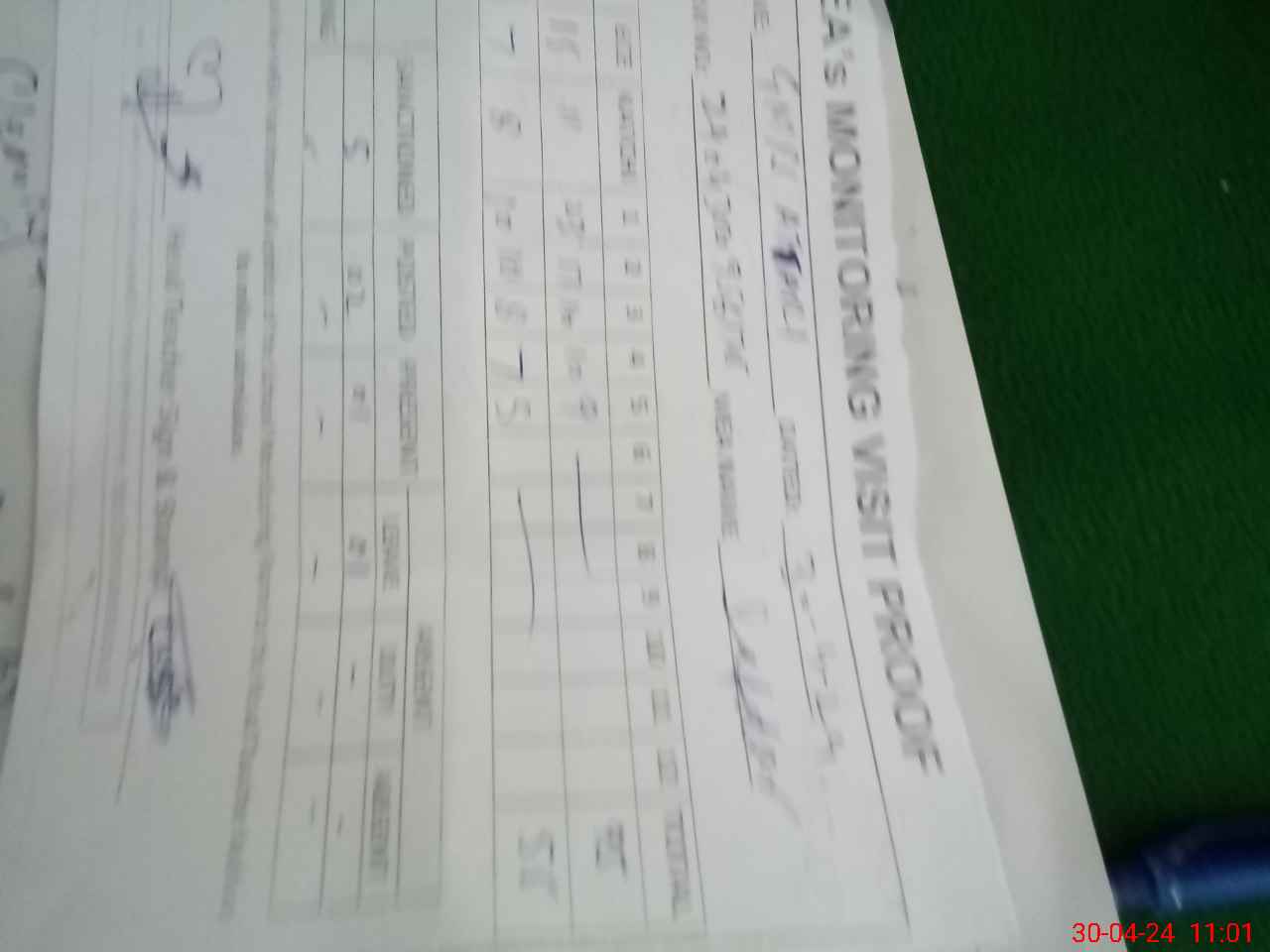 | Monitoring Date: 30-04-2024 | Start Time: 30-04-2024 09:55 AM | End Time: 30-04-2024 11:01 AM | Name of MEA: MU**** SA**** HU**** | |