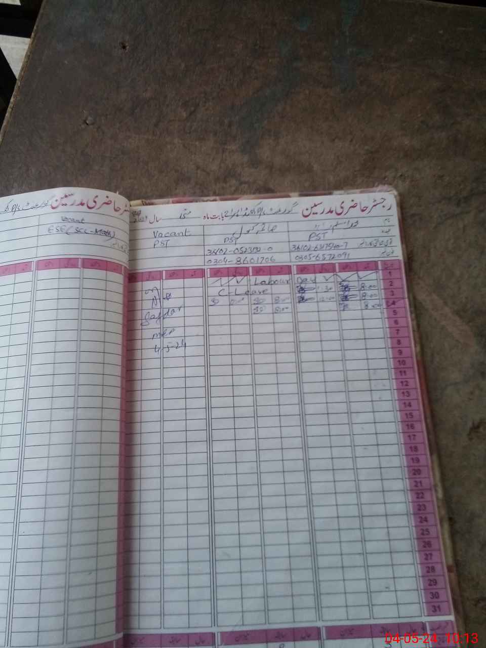 | CNIC | Full Name | Designation | R/C | Absence During Last Calender Month |