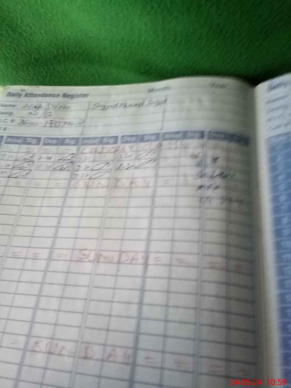 | CNIC | Full Name | Designation | R/C | Absence During Last Calender Month |