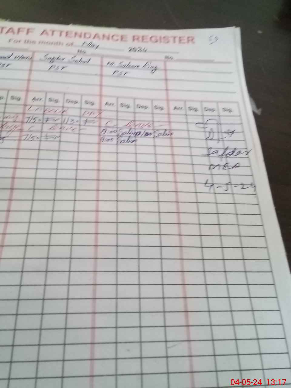 | 36**** | Mu**** Wa**** | PST | Regular | 0 | 0 | 0 | 0 | 0 | 0 | 0 | 0 | 0 | Exam Duty |