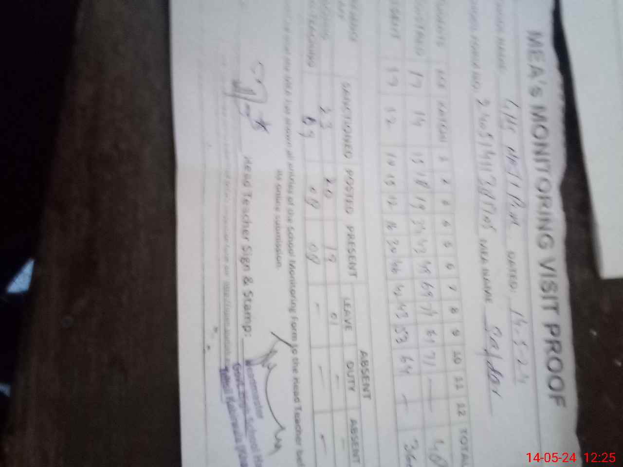 | Attendance Register | Head Teacher | MEA with School | Visit Proof |