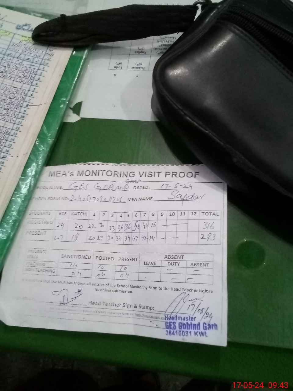 | Attendance Register | Head Teacher | MEA with School | Visit Proof |
