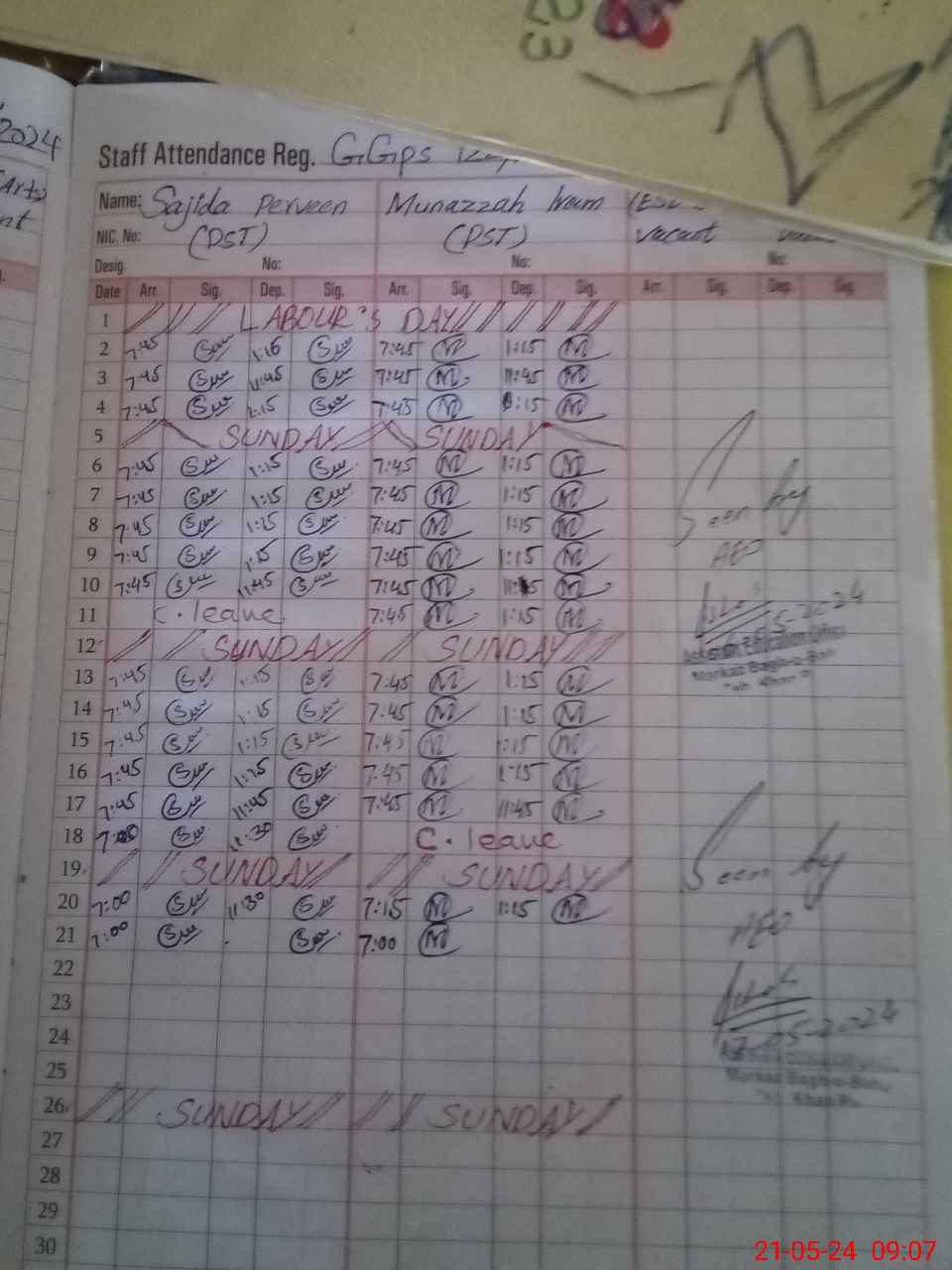 | CNIC | Full Name | Designation | R/C | Absence During Last Calender Month |