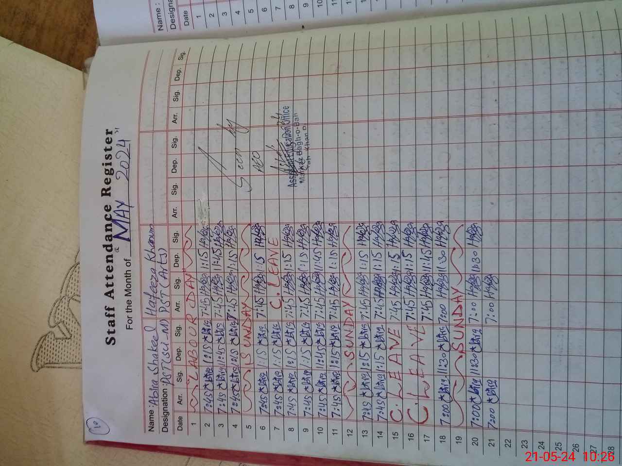 | Leave | Duty | Absent | Maternity | Medical | Ex- Pak |