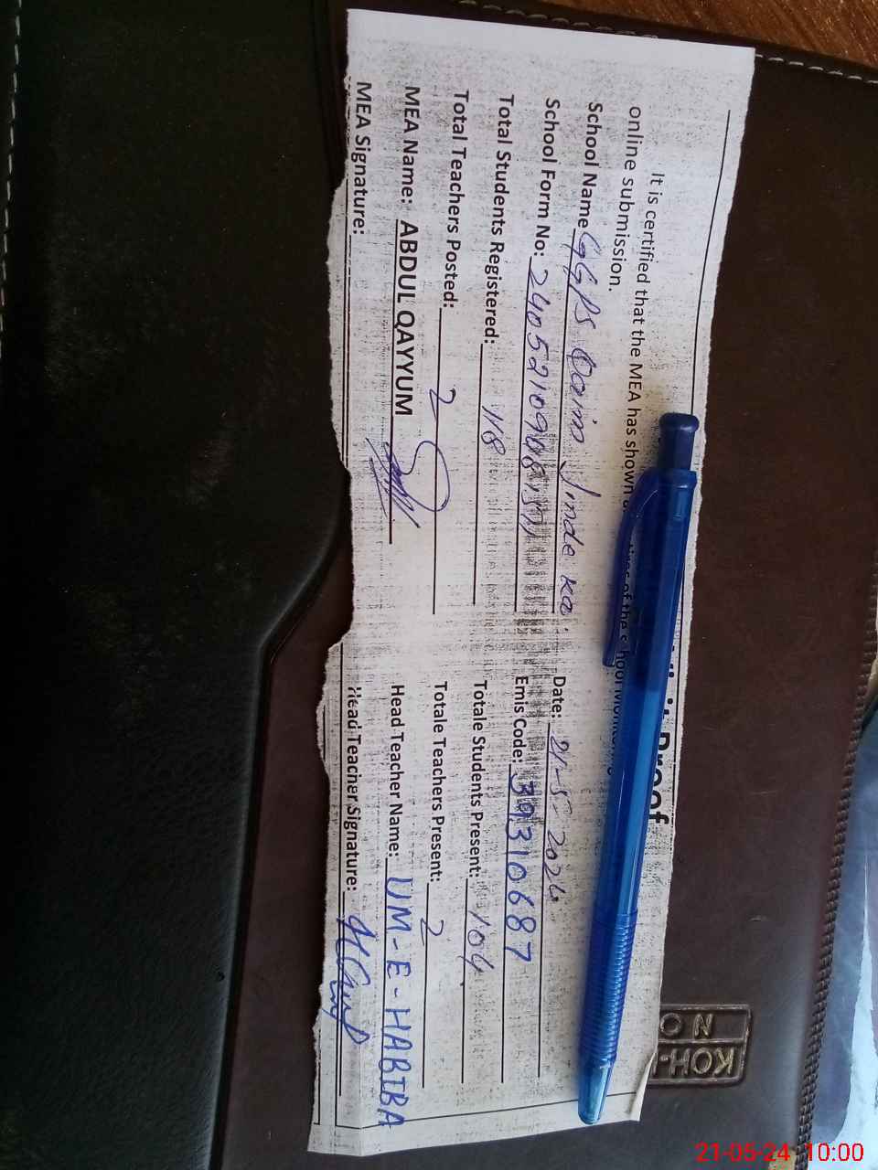 | Name: Um**** Ha**** Designation: (School Headmaster's/Headmistress's) PST Phone/Cell Number: 03**** |