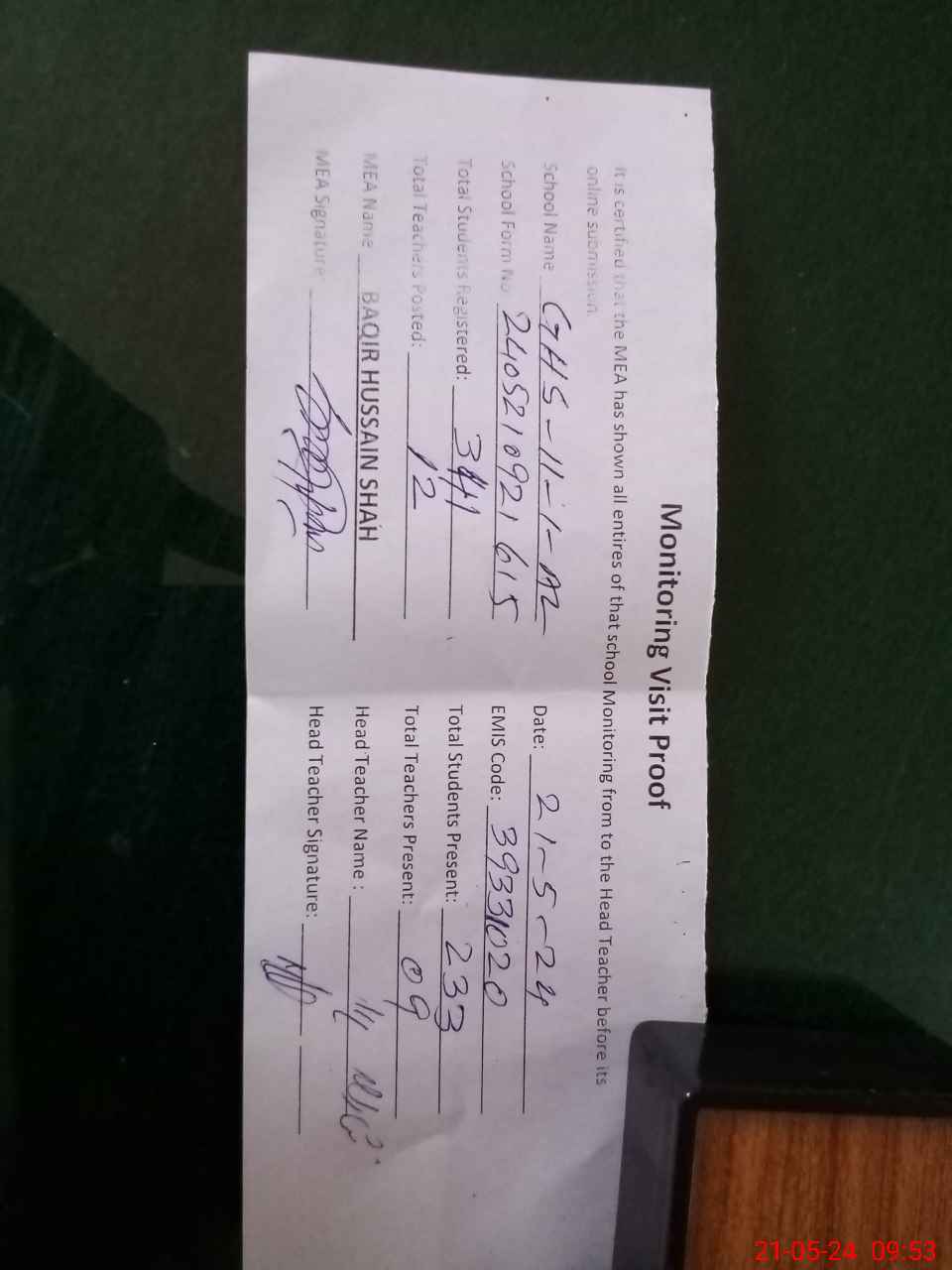 | Certified that this School was Inspected by the Undersigned MEA/DMO Today and the Information Stated Above is as Per Record. | |||||