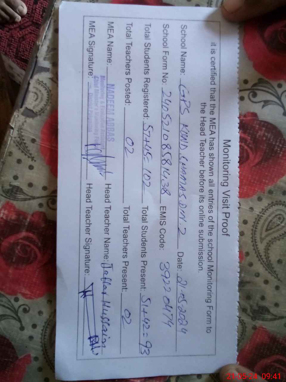 | EMIS Code: 39220474 | Name of School: GPS KUND SHAMAS DIN NO 2 | |||