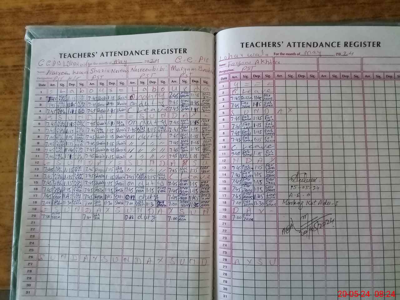 | 32**** | Na**** BiBi | 1 | 1 | 0 | 0 | 0 | 0 | 0 | 0 | 0 | 0 | 0 | Exam Duty |