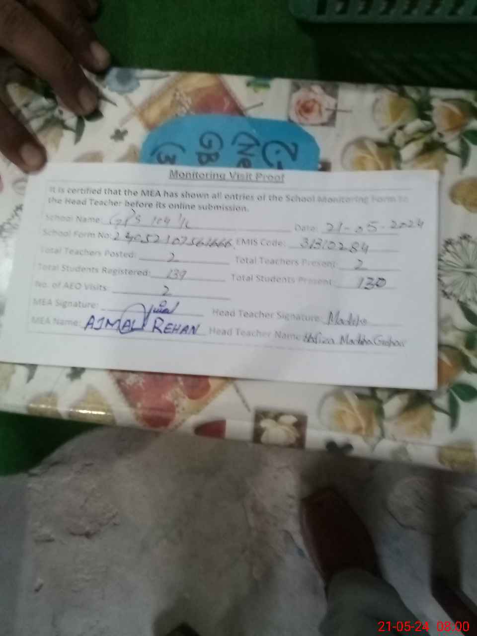 | EMIS Code: 31310284 | Name of School: GPS CHAK NO.104/1-L | |||