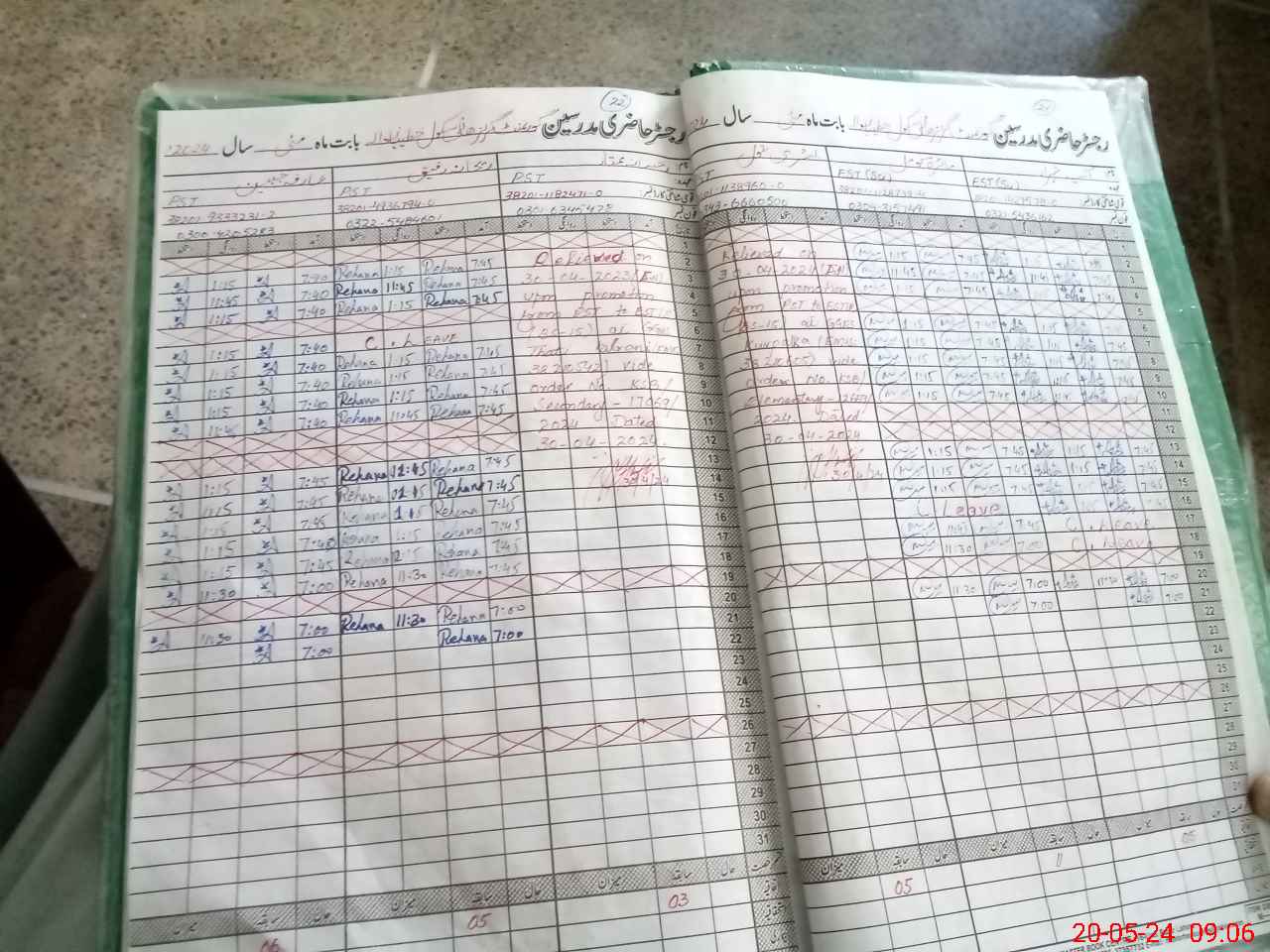 | CNIC | Full Name | Designation | R/C | Absence During Last Calender Month |