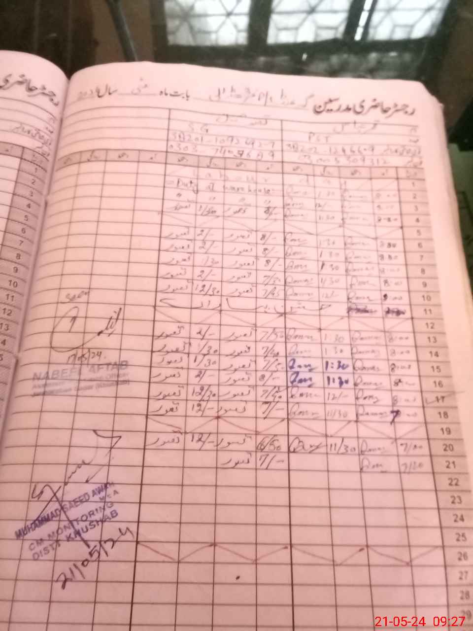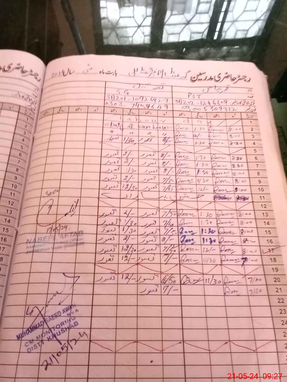| CNIC | Full Name | Designation | R/C | Absence During Last Calender Month |