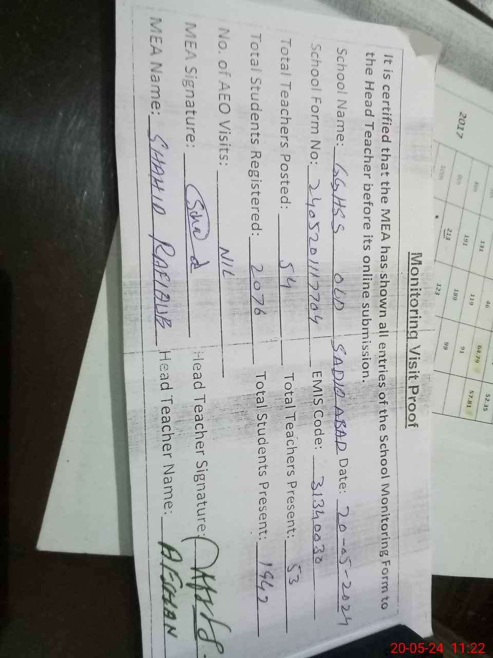 | Certified that this School was Inspected by the Undersigned MEA/DMO Today and the Information Stated Above is as Per Record. | |||||
