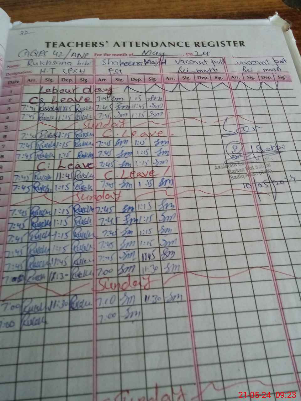 | Name: RU**** Designation: (School Headmaster's/Headmistress's) PST Phone/Cell Number: 03**** |