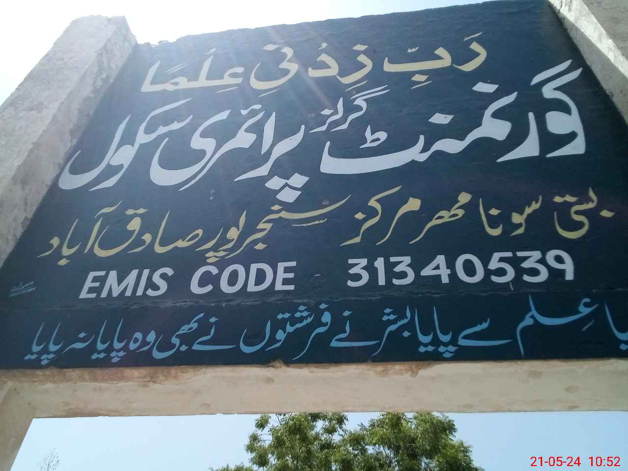 | District: RAHIMYAR KHAN | Tehsil: SADIQABAD | Markaz: SANJAR PUR - FEMALE | Level: Primary | |