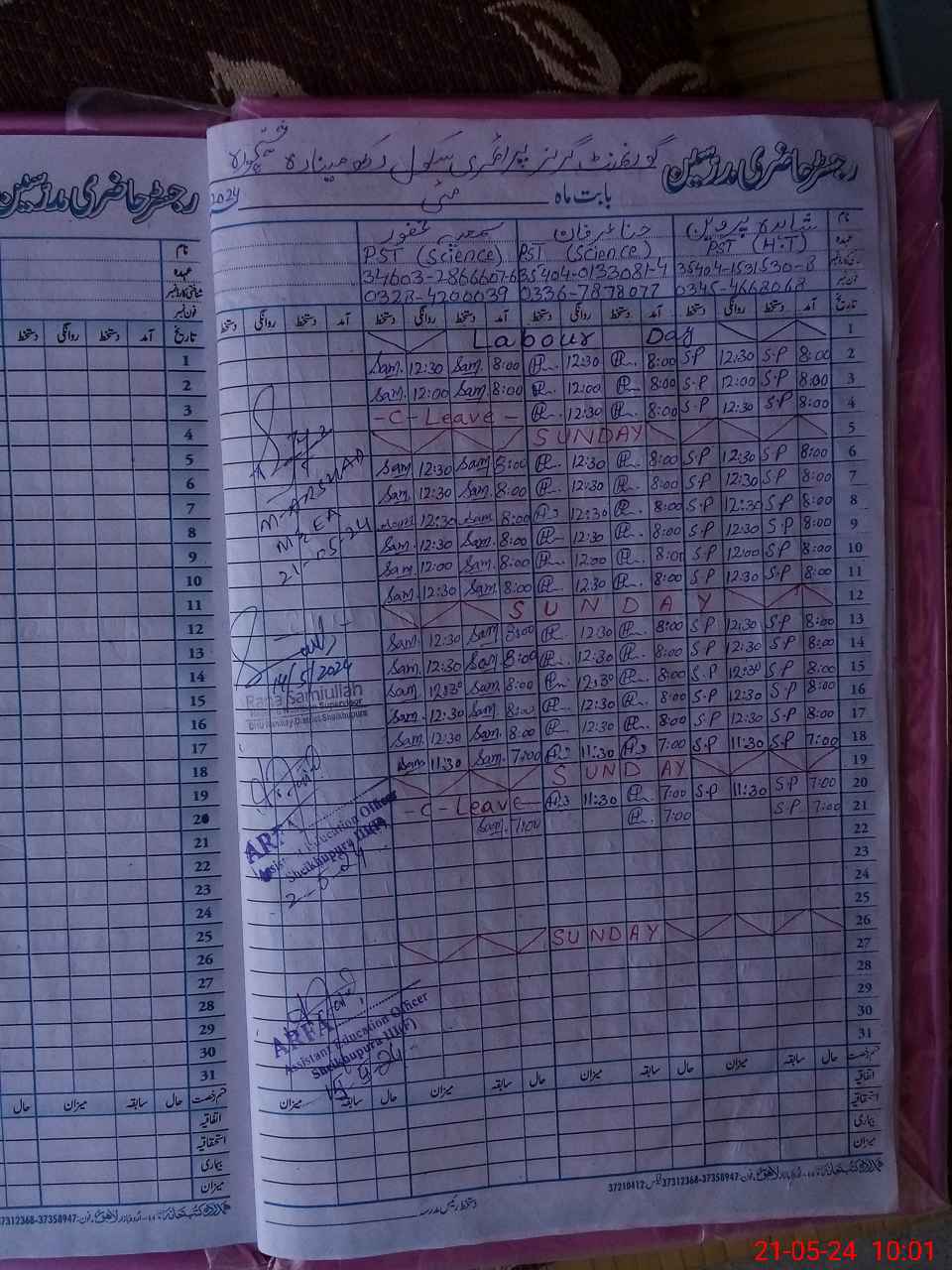| Name: Sh**** Pa**** Designation: (School Headmaster's/Headmistress's) PST Phone/Cell Number: 03**** |