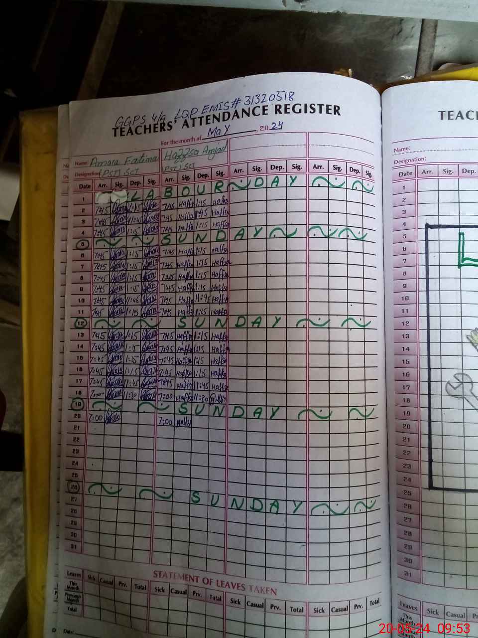 | Leave | Duty | Absent | Maternity | Medical | Ex- Pak |