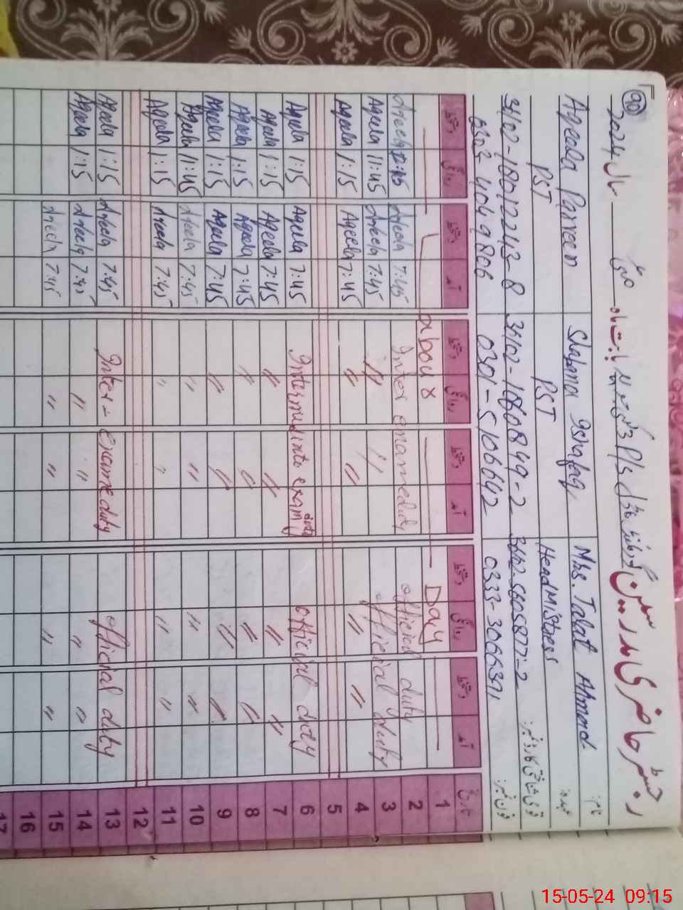 | 36**** | Sh**** Is**** | PST | Regular | 0 | 0 | 0 | 0 | 0 | 0 | 0 | 0 | 0 | Exam Duty |