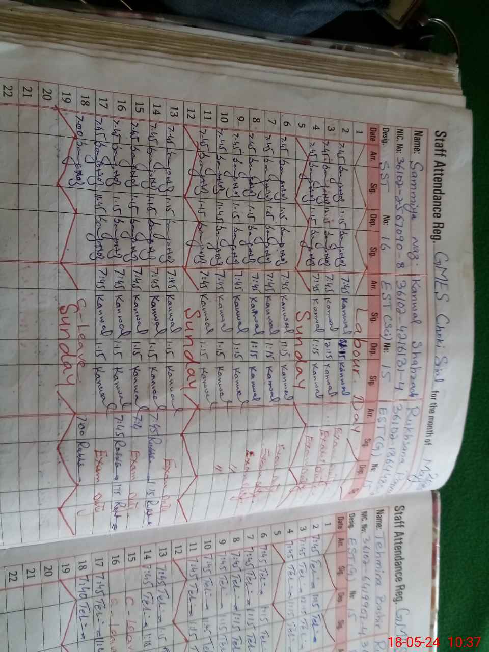 | CNIC | Full Name | Designation | R/C | Absence During Last Calender Month |