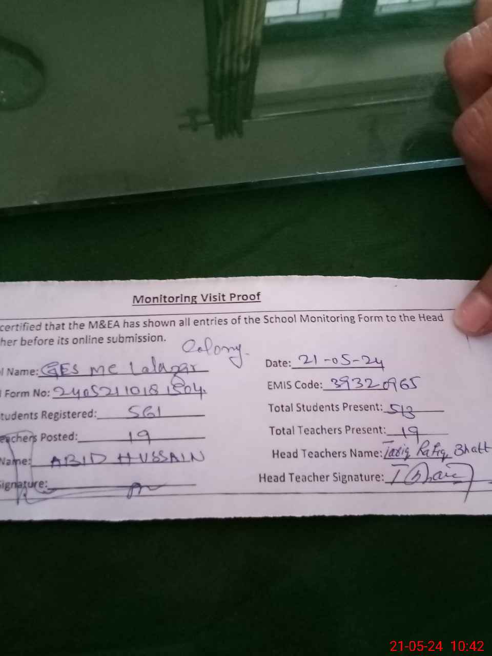 | Certified that this School was Inspected by the Undersigned MEA/DMO Today and the Information Stated Above is as Per Record. | |||||