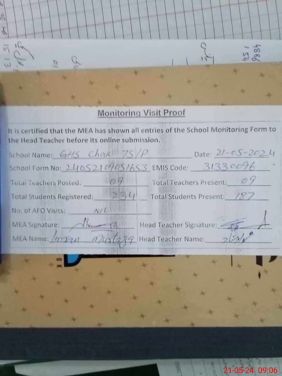 | EMIS Code: 31330096 | Name of School: GHS CHAK 75/P | |||