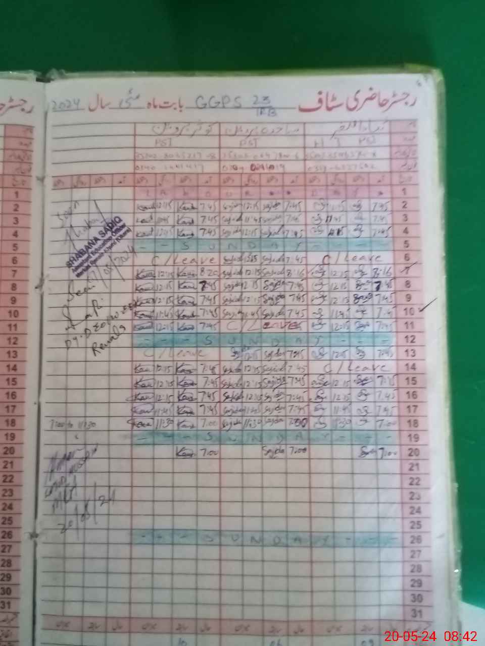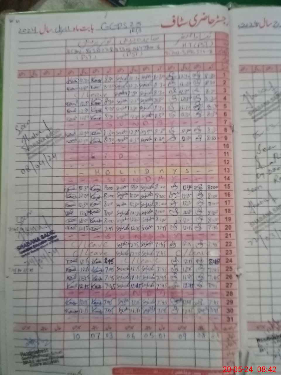 | CNIC | Full Name | Designation | R/C | Absence During Last Calender Month |