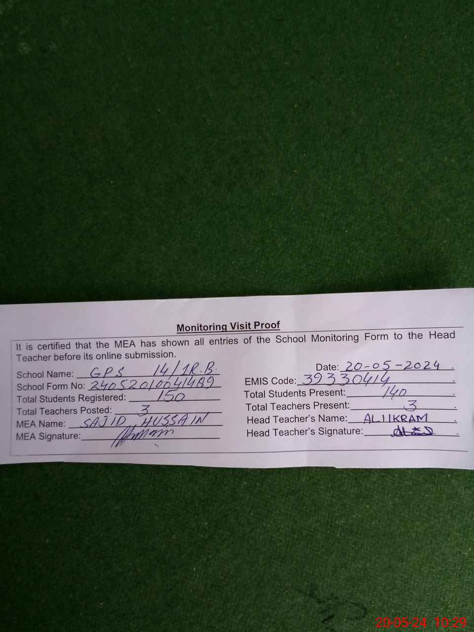 | EMIS Code: 39330414 | Name of School: GPS CHAK NO. 14/1-RB | |||