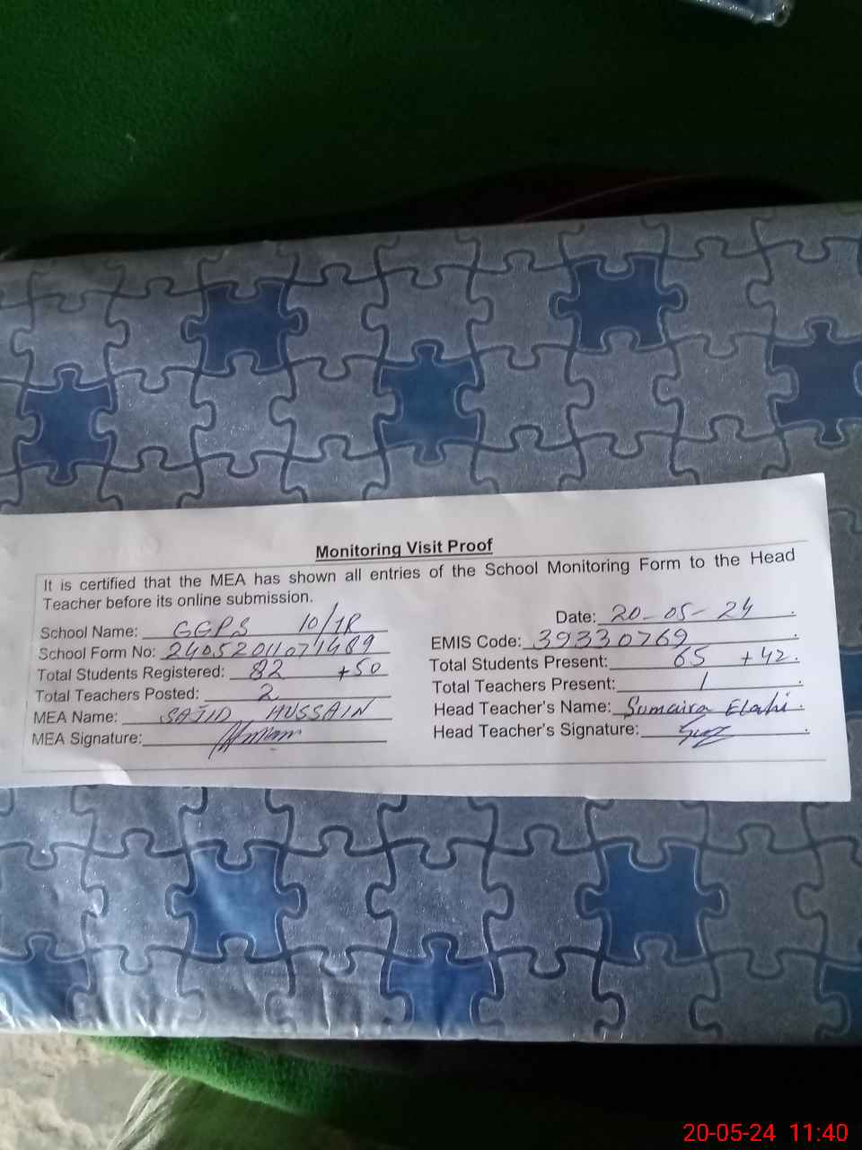 | Certified that this School was Inspected by the Undersigned MEA/DMO Today and the Information Stated Above is as Per Record. | |||||