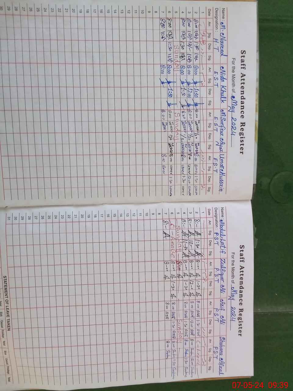 | Monitoring Date: 07-05-2024 | Start Time: 07-05-2024 09:06 AM | End Time: 07-05-2024 09:41 AM | Name of MEA: Ma**** UlHa**** | |
