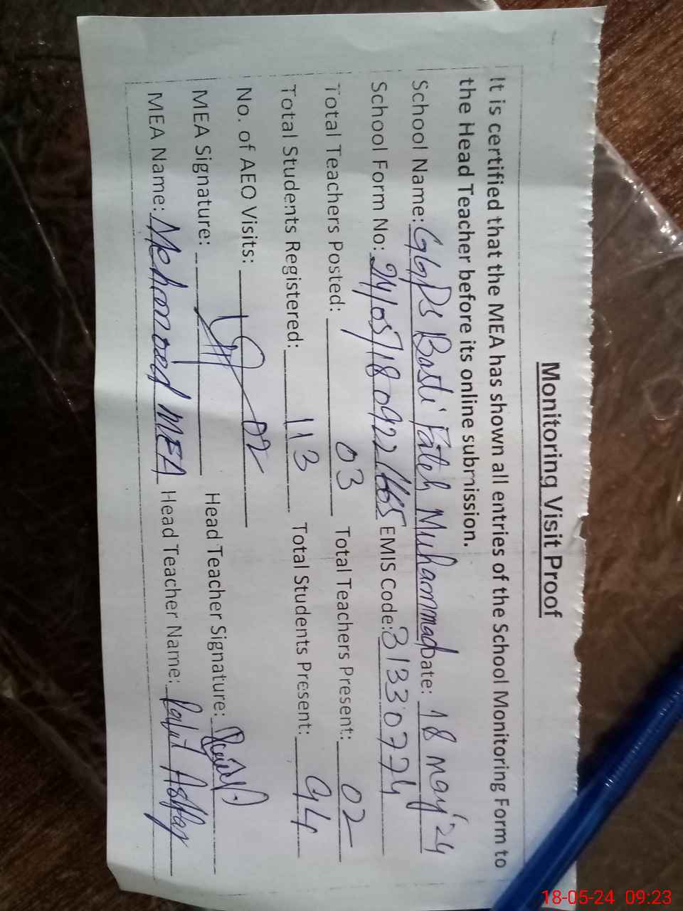 | EMIS Code: 31330774 | Name of School: GGPS BASTI FATEH MUHAMMAD | |||