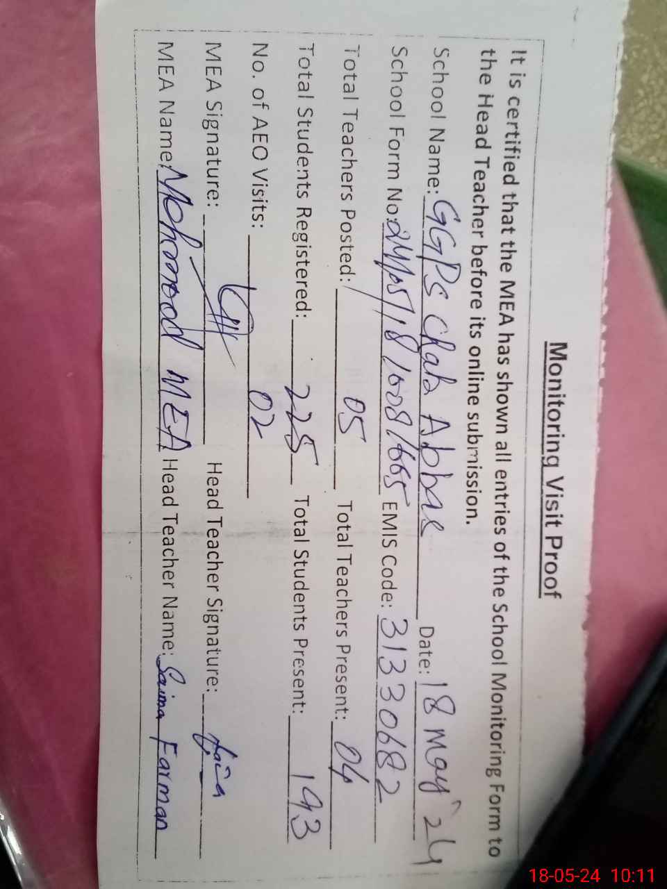 | EMIS Code: 31330682 | Name of School: GGPS CHAK ABBAS | |||