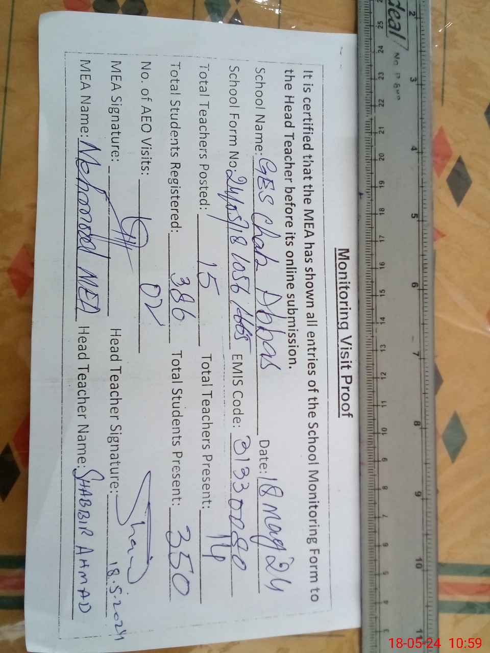 | EMIS Code: 31330080 | Name of School: GES CHAK ABBAS | |||