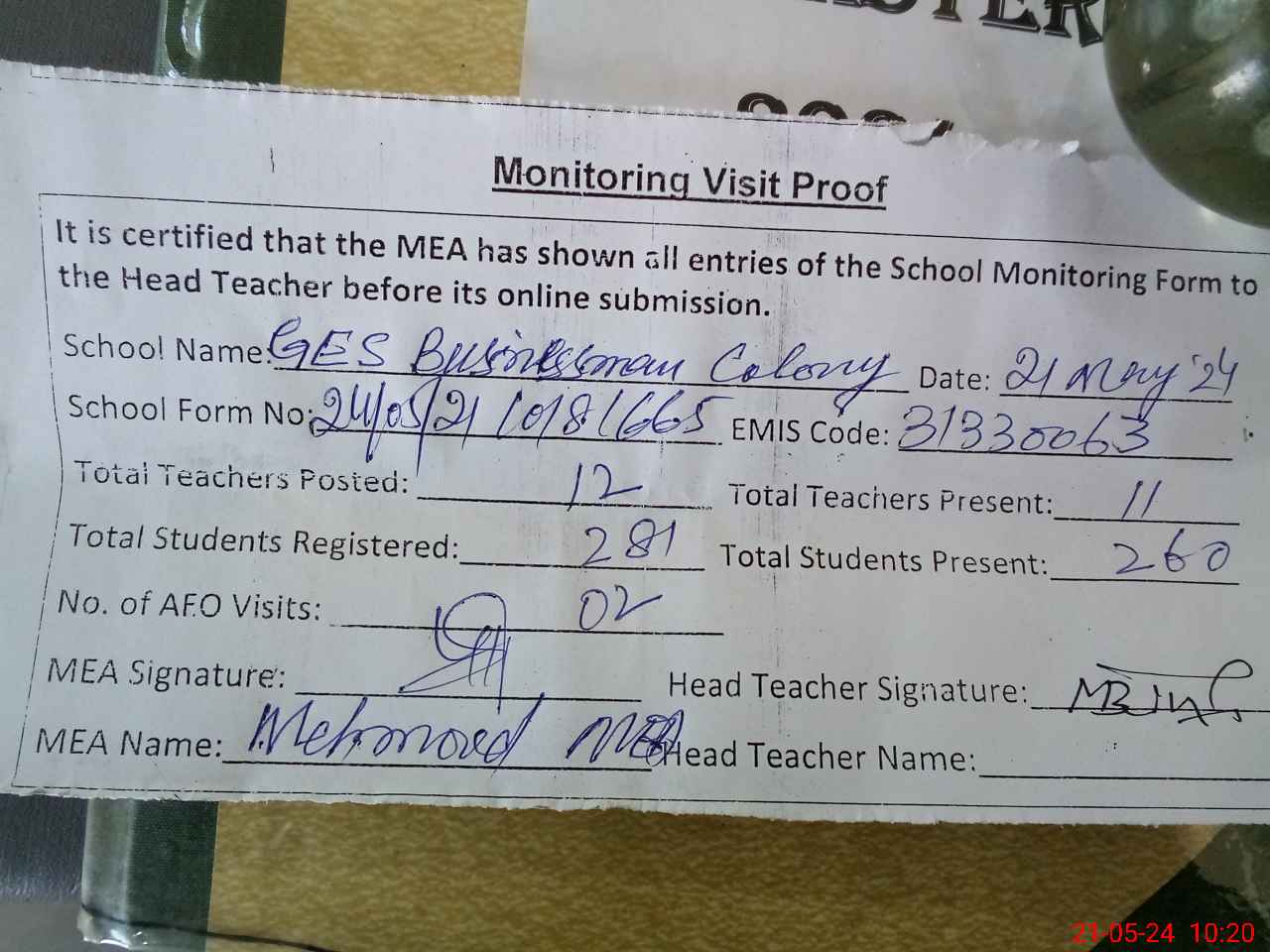 | EMIS Code: 31330063 | Name of School: GES BUSINESS MEN COLONY | |||