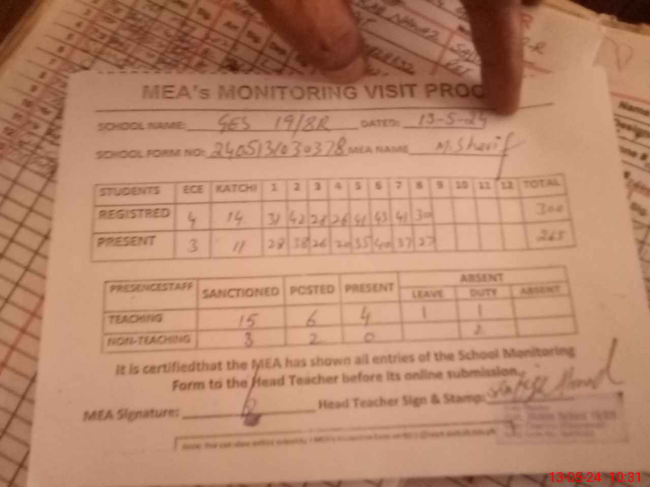 | Certified that this School was Inspected by the Undersigned MEA/DMO Today and the Information Stated Above is as Per Record. | |||||