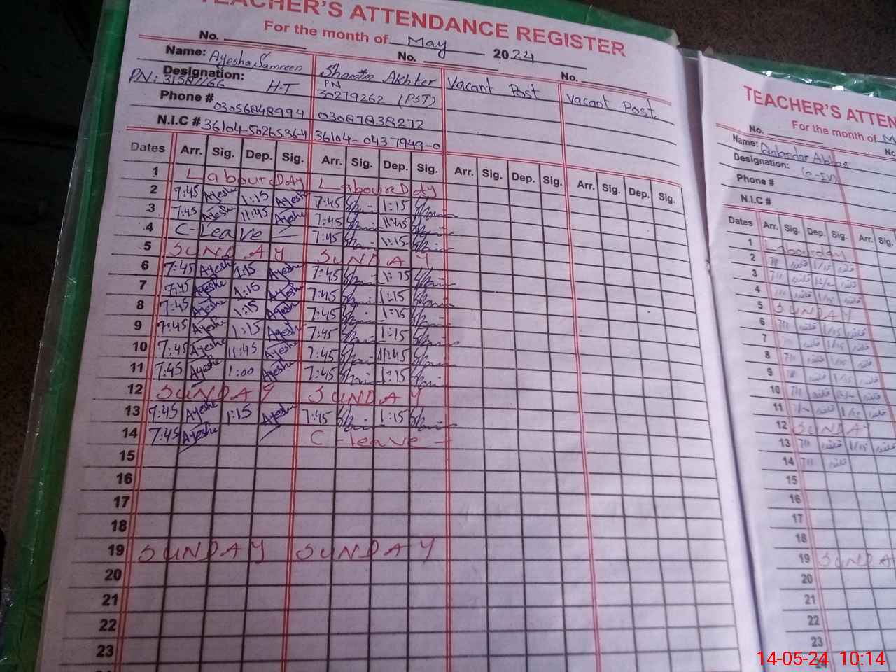 | 36**** | Sh**** Ak**** | PST | Regular | 2 | 0 | 0 | 0 | 0 | 0 | 0 | 0 | 2 | Casual |