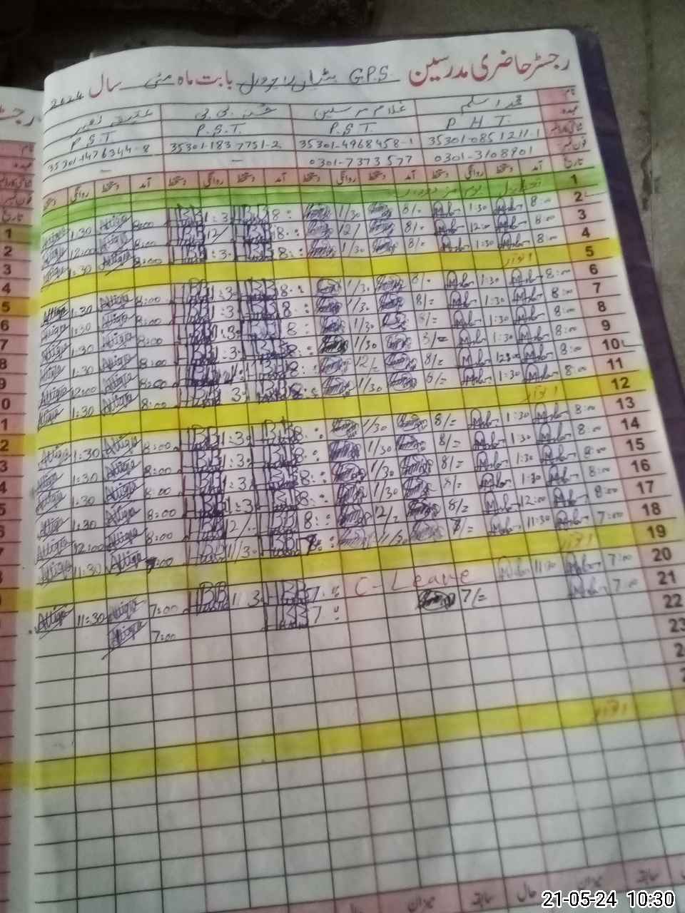 | CNIC | Full Name | Designation | R/C | Absence During Last Calender Month |