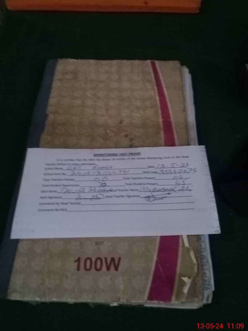 | Attendance Register | Head Teacher | MEA with School | Visit Proof |