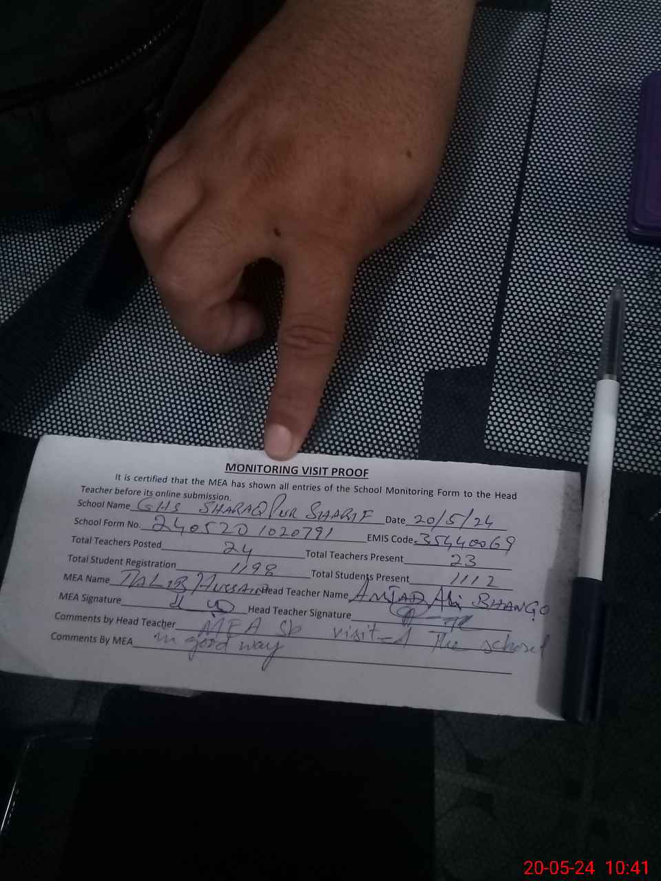 | Attendance Register | Head Teacher | MEA with School | Visit Proof |