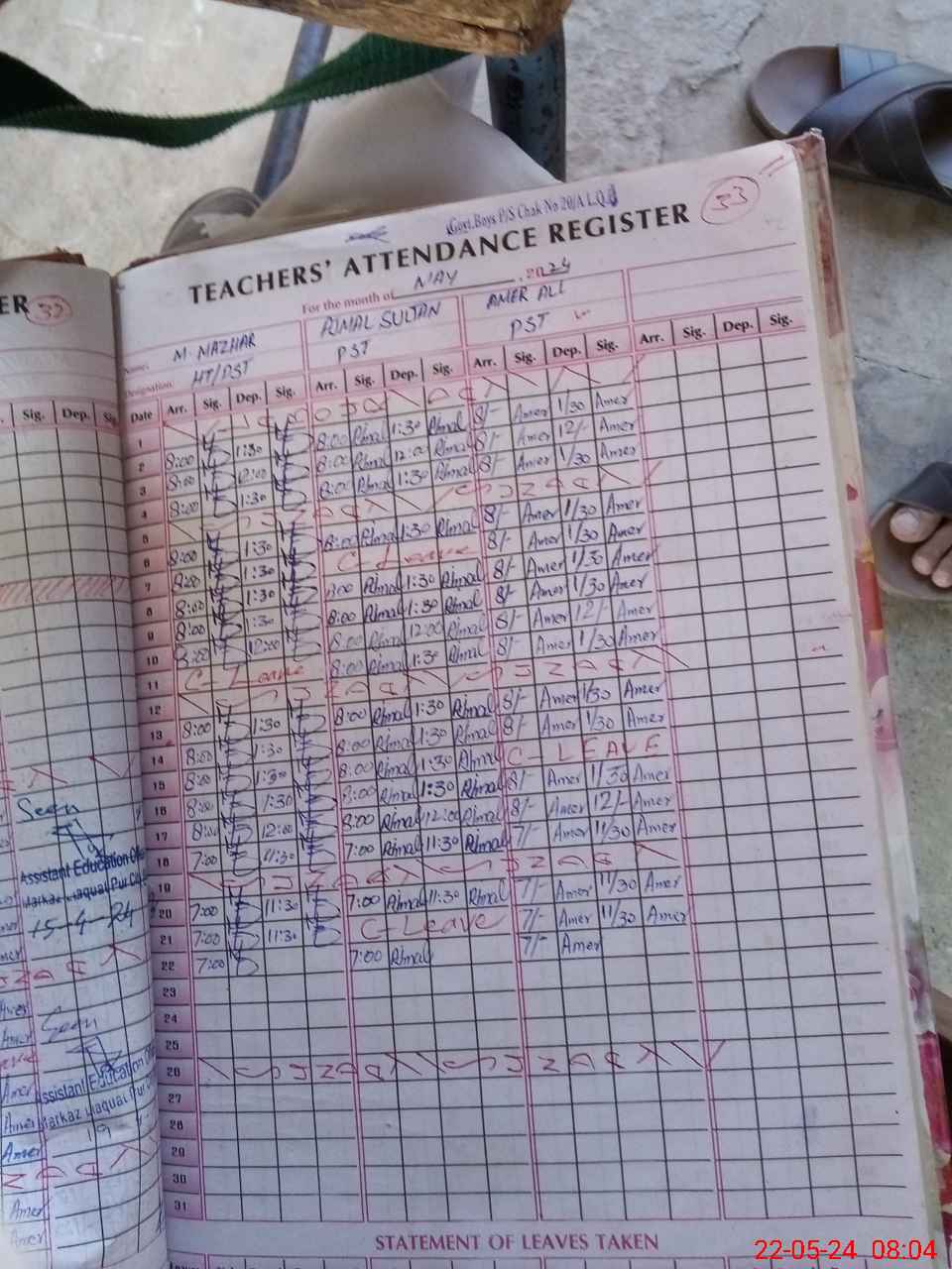 | Name: AM**** AL**** Designation: (School Headmaster's/Headmistress's) PST Phone/Cell Number: 03**** |