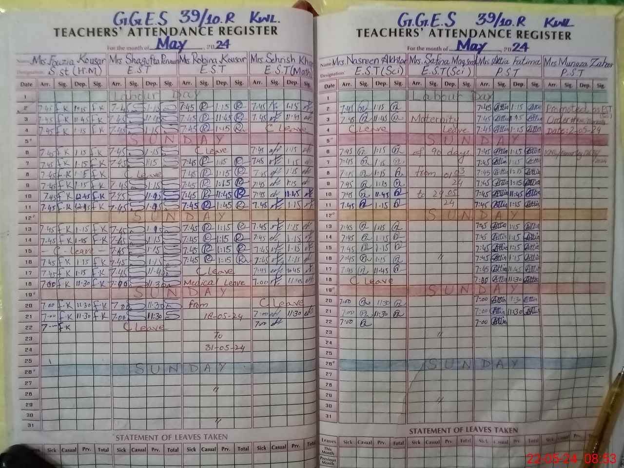| Leave | Duty | Absent | Maternity | Medical | Ex- Pak |