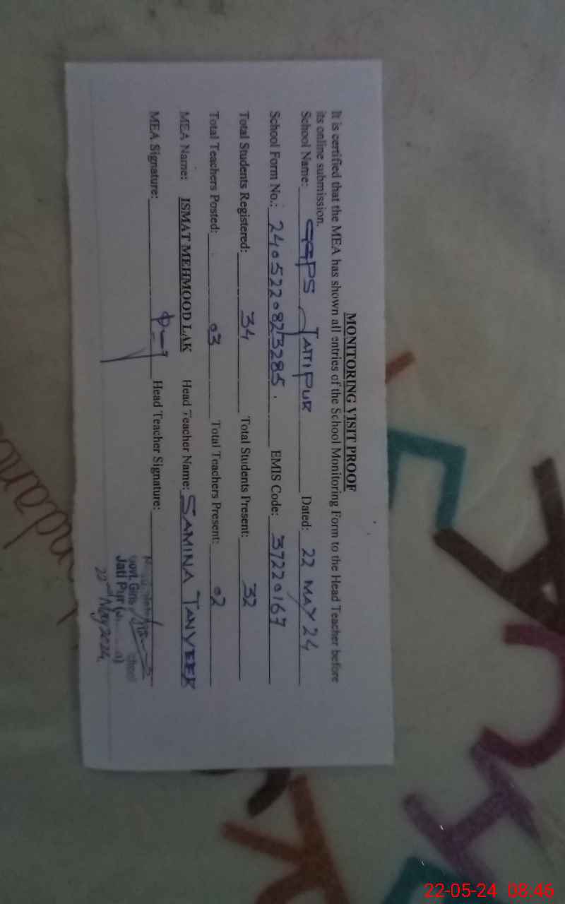 | EMIS Code: 37220167 | Name of School: GGPS JATIPUR | |||