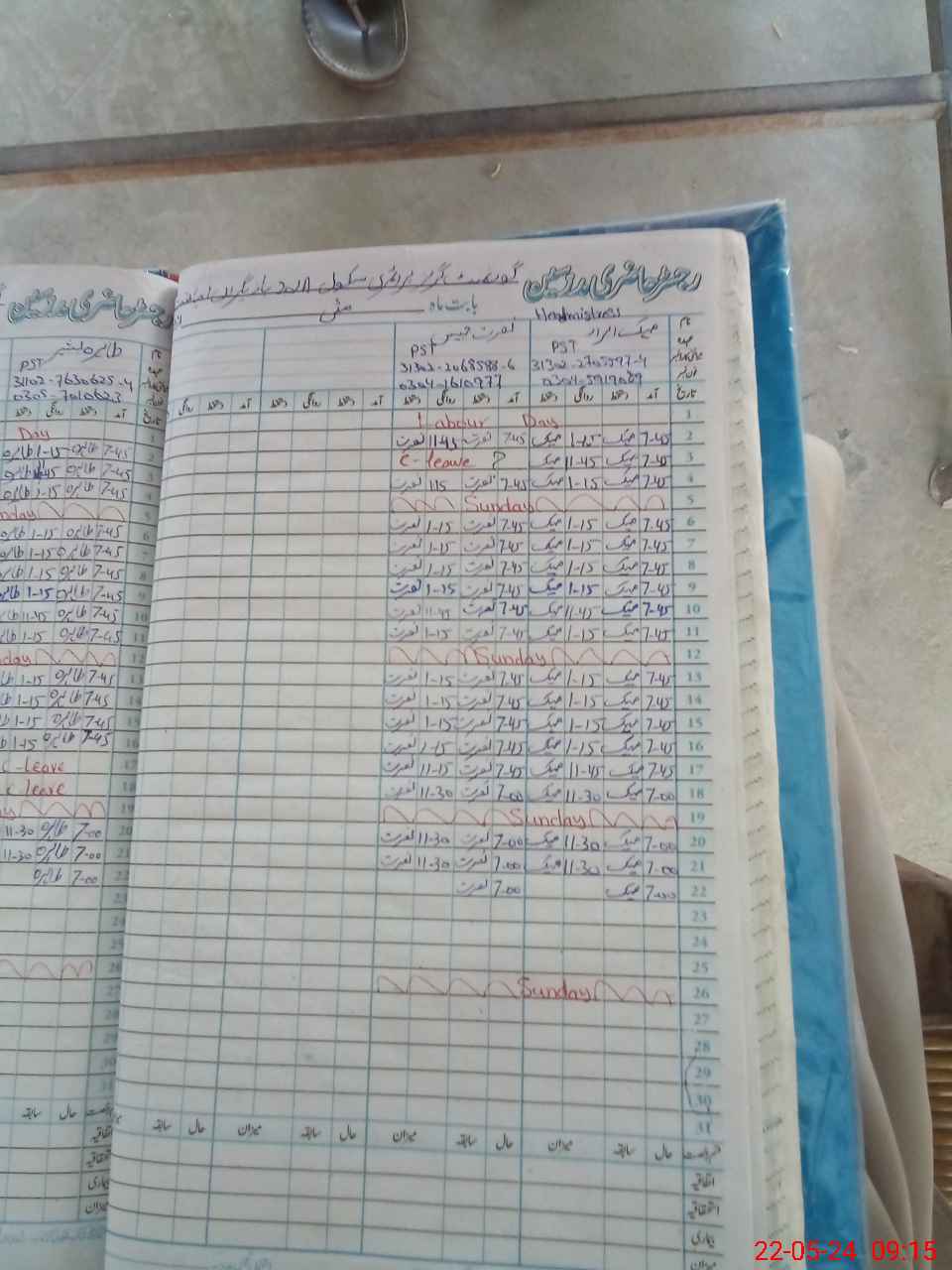 | Leave | Duty | Absent | Maternity | Medical | Ex- Pak |