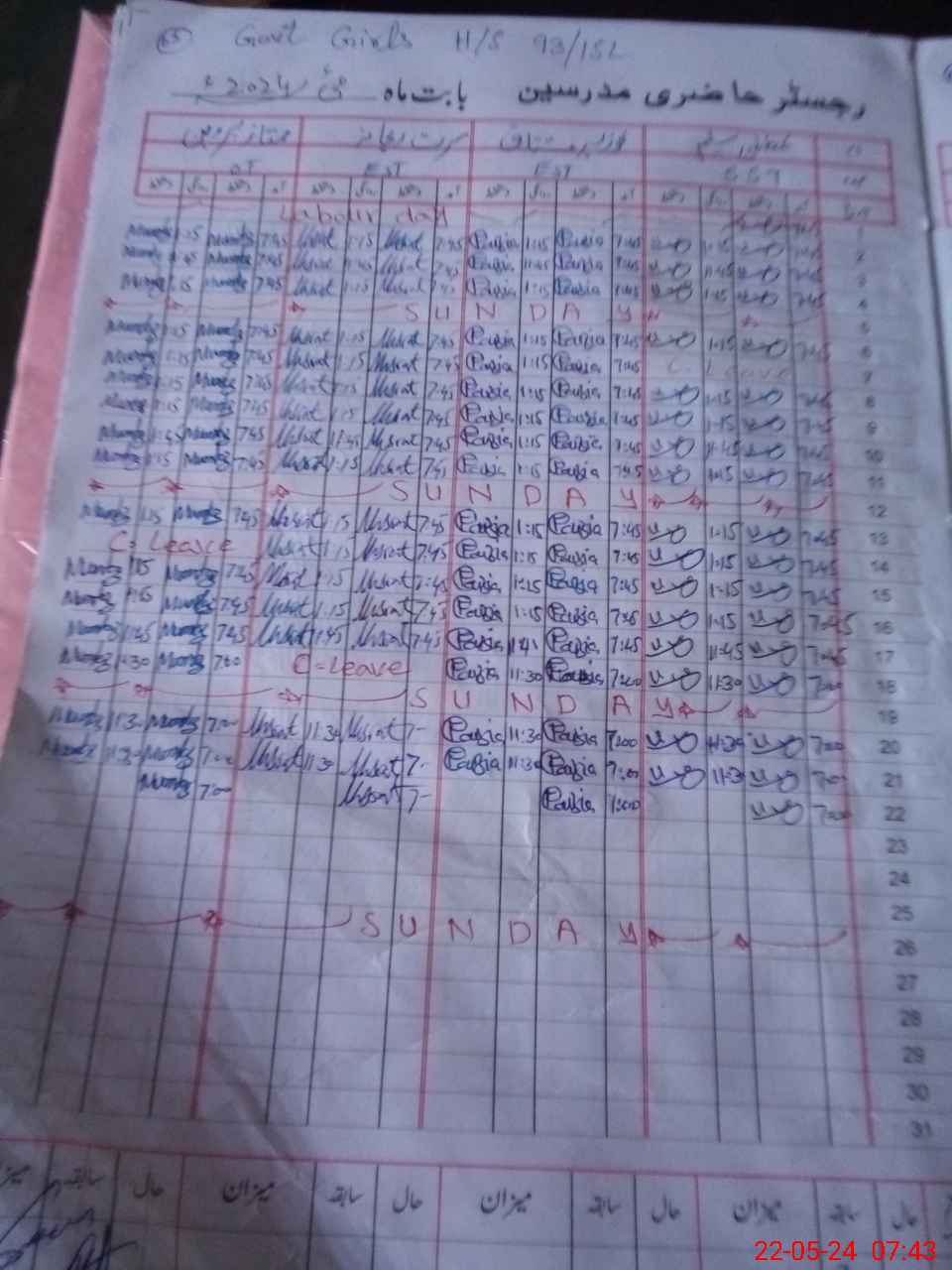 | CNIC | Full Name | Designation | R/C | Absence During Last Calender Month |