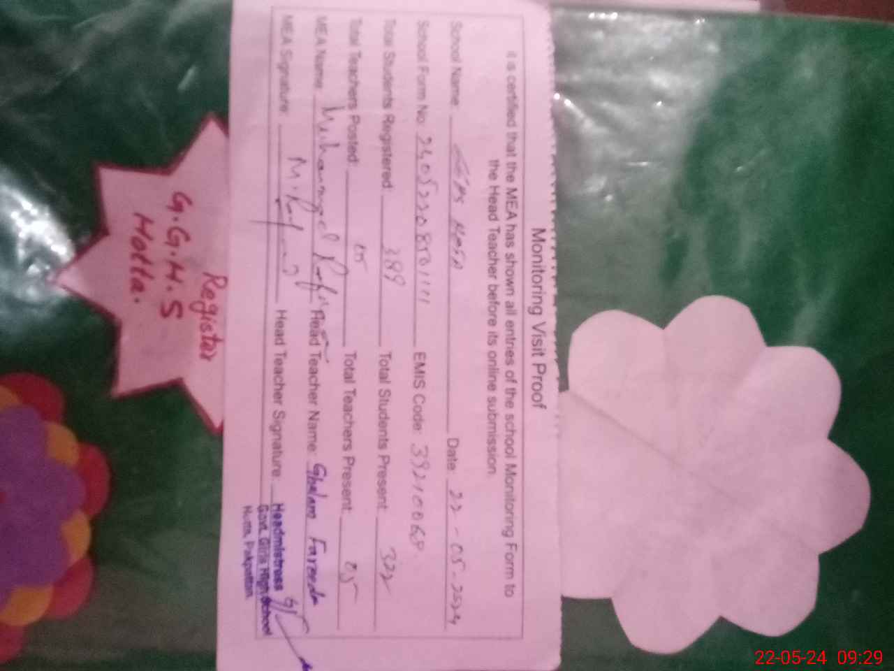 | EMIS Code: 39210068 | Name of School: GGHS HOTA | |||