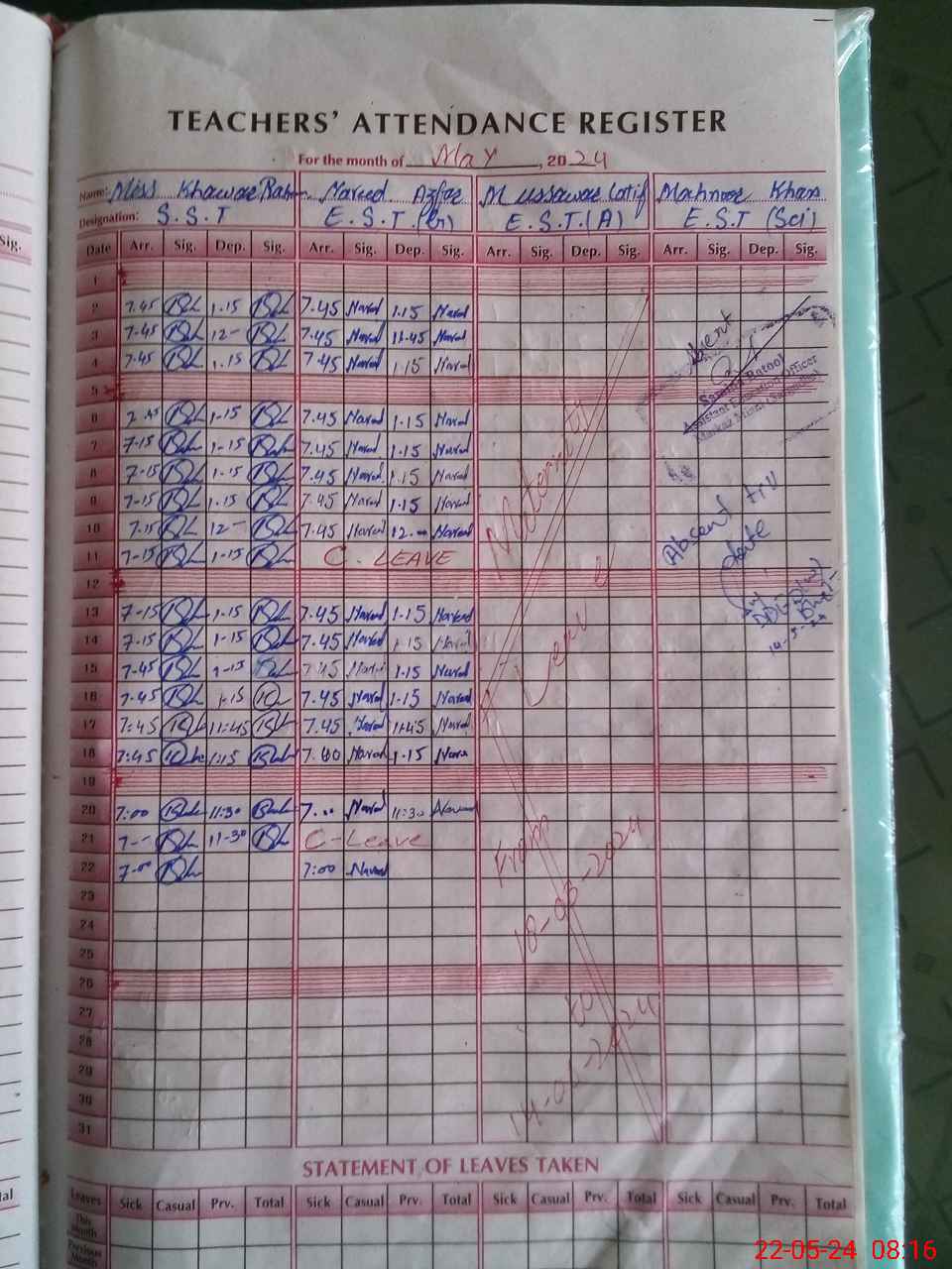 | 38**** | Ma**** Kh**** Ta**** | 1 | 15 | 0 | 0 | 0 | 12 | 0 | 0 | 0 | 3 | Absent (Un-Authorized) | |
