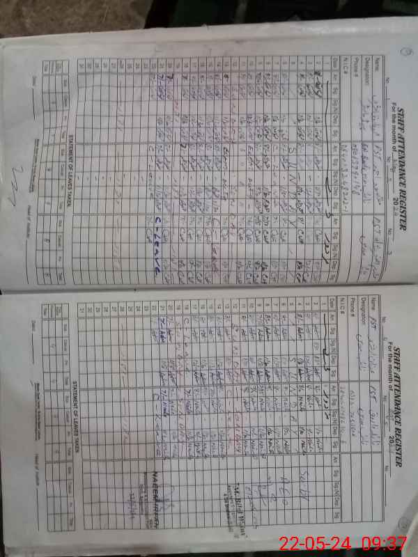 | CNIC | Full Name | Designation | R/C | Absence During Last Calender Month |